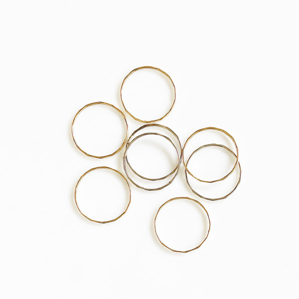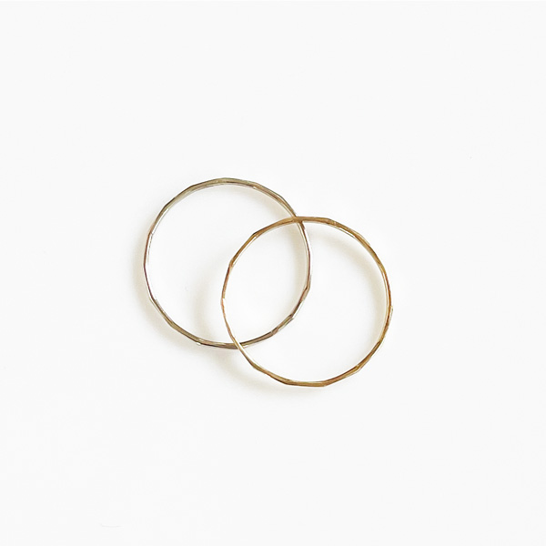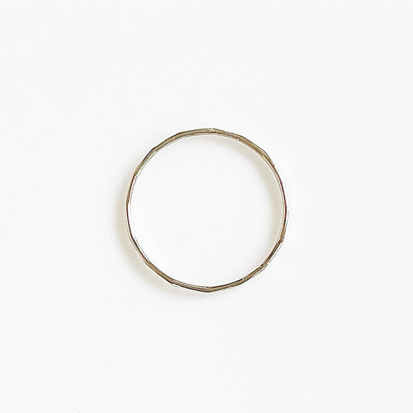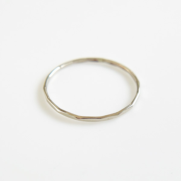 Melissa Joy Manningの超ロングセラーリングが約10年振りに再入荷しました! こちらは、ホワイトゴールドの日本サイズで約11号です。 (※ホワイトゴールドはシルバー製品の様な黒ずみが生じないのでケアも簡単です。) ここのところ、華奢リングがトレンドですが、 このメリッサジョイマニングのリングはとても華奢なラインにも拘らず、 ハンマーで角をつくることで、綺麗にキラキラ光る仕上げにしています。 1本でも十分に楽しめ、重ねづけにももちろん幅広くお使い頂けます。 メリッサジョイマニングでは8本セットで販売をしていますが、 当店では、お好きな本数をお買い求め頂ける様に1本ずつの販売にさせて頂きました。 イエローゴールドもシルバーカラーも共に素材は14金ゴールド、 今回サイズは、日本サイズで約5号、約11号、約14号をご用意しています。 Melissa Joy Manningは、1つ1つ丁寧にハンドメイドで仕上げられた とても繊細なラインのジュエリーです。 Melissa Joy Manningでは、 仕上げにハンマーを使って一点一点丁寧に薄く仕上げています。 ハンドメイドであるが故の職人の”温もり”と”誇り”が感じられる完璧な仕上がりで、 肌馴染みもとても良く、リピーターさんが多いブランドです。 ※fabCouture.comは、Melissa Joy Manning正規販売店です。 安心してお買い求め下さい。 ●サイズ(アメリカ:06号/日本:約11号) *直径/約1.7cm *重さ/1.0g以下 (全てハンドメイドのため多少誤差あり) ●素材/14K GOLD ●色/White Gold MR