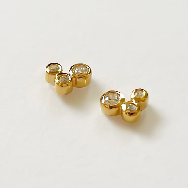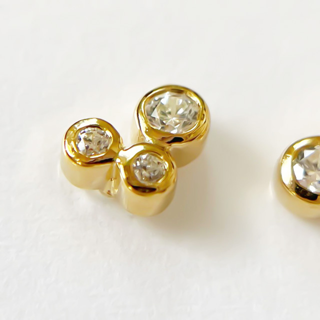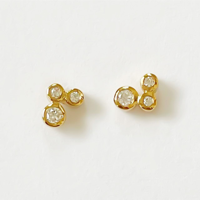 小さなキュービックジルコニアが3つ付いたプチピアスはとても可憐で上品な印象です。